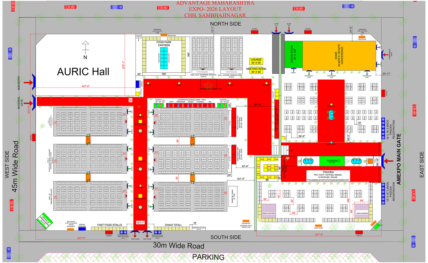 Complete overview of the AM Expo 2026 stall layout at AURIC, Chhatrapati Sambhajinagar